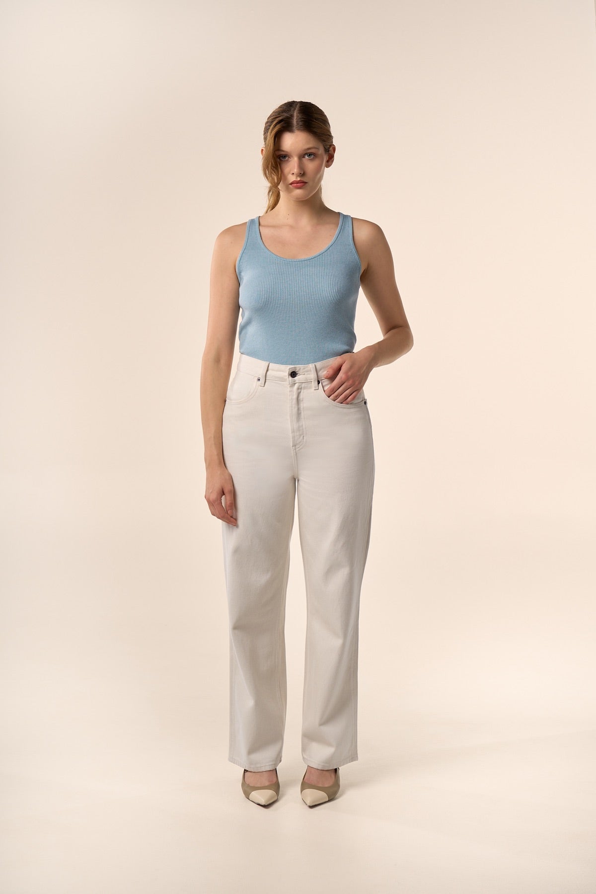 - Coupe droite et taille haute.