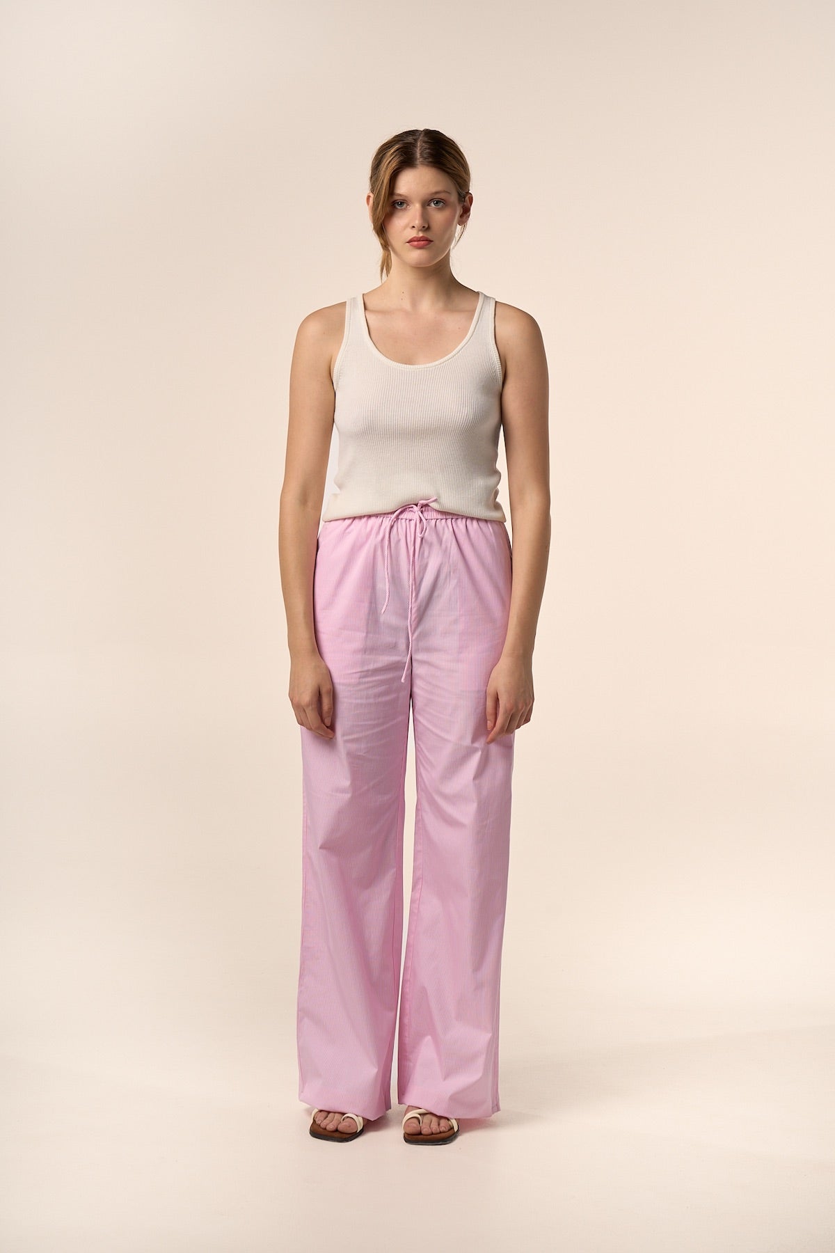 Pantalon fluide en coton à taille élastiquée.