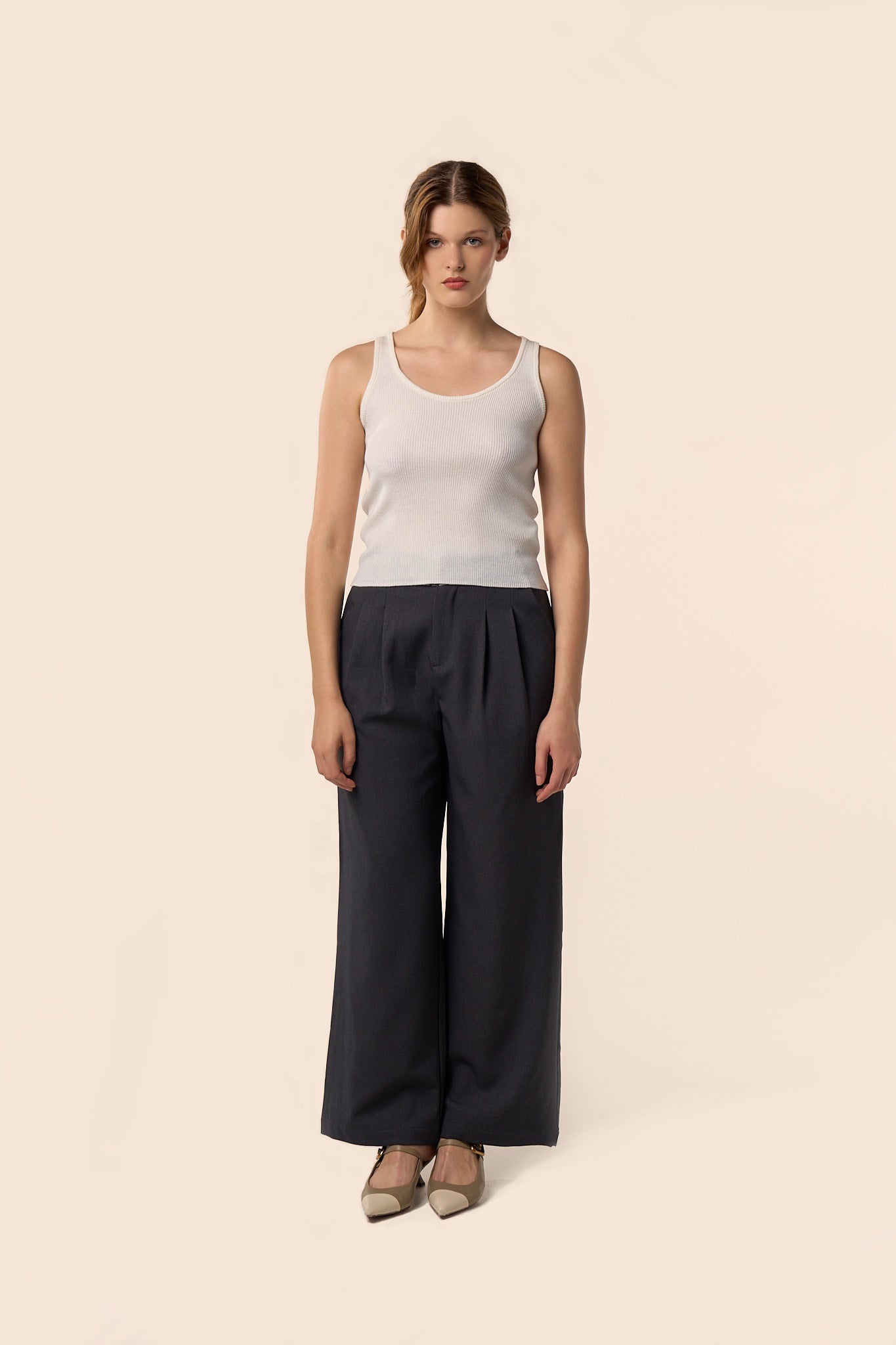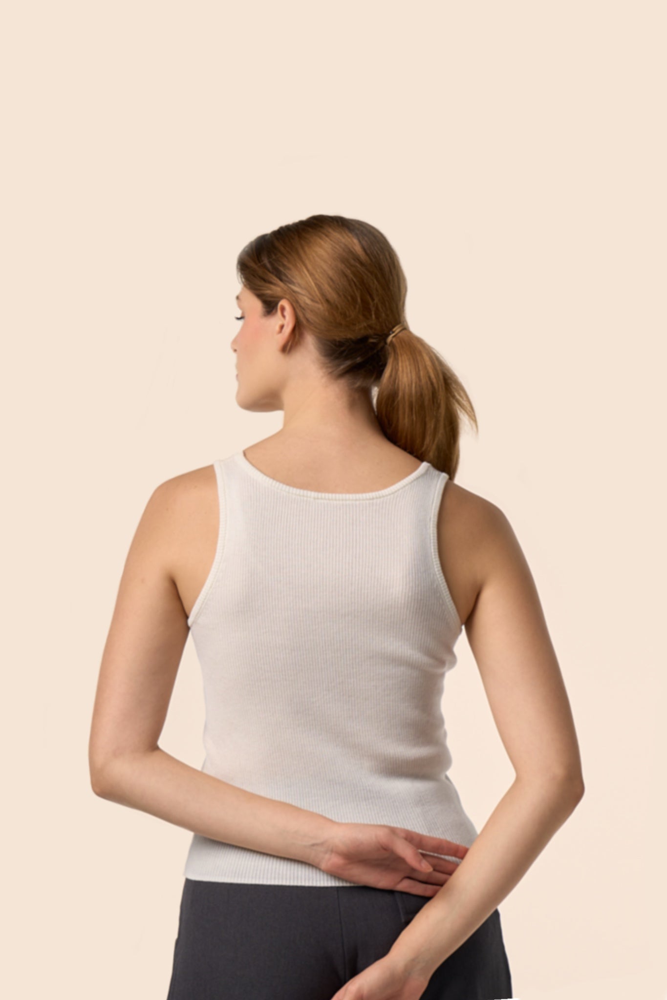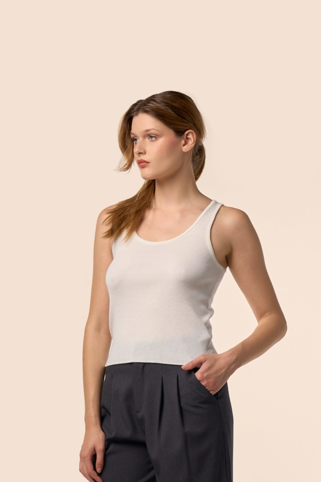 Débardeur côtelé en maille fine blanc crème.